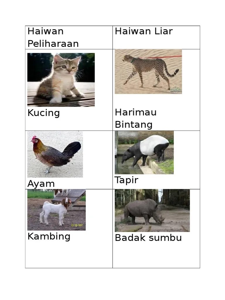 Gambar Haiwan Jinak Dan Liar / Kad Imbasan Haiwan